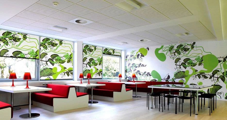 - Брендирование. Фотопечать на рольшторах и жалюзи – отличный способ для офисов, кафе и магазинов повысить узнаваемость бренда, достаточно нанести на полотно логотип или рекламный слоган компании.