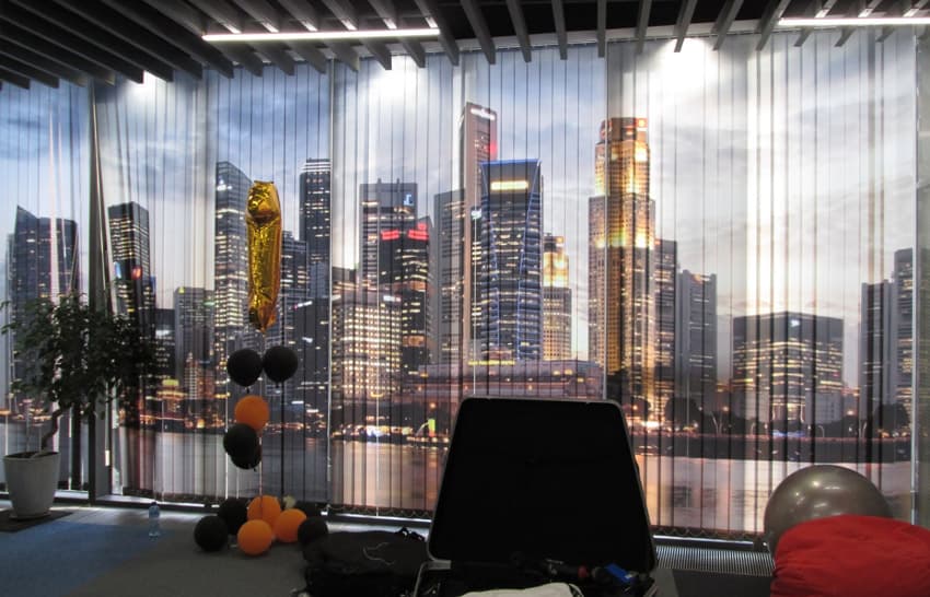 - Стойкость. Фотопечать на вертикальных жалюзи и рольшторах устойчива к выгоранию на солнце, не вымывается при стирке, не имеет запаха и не теряет своих свойств со временем.