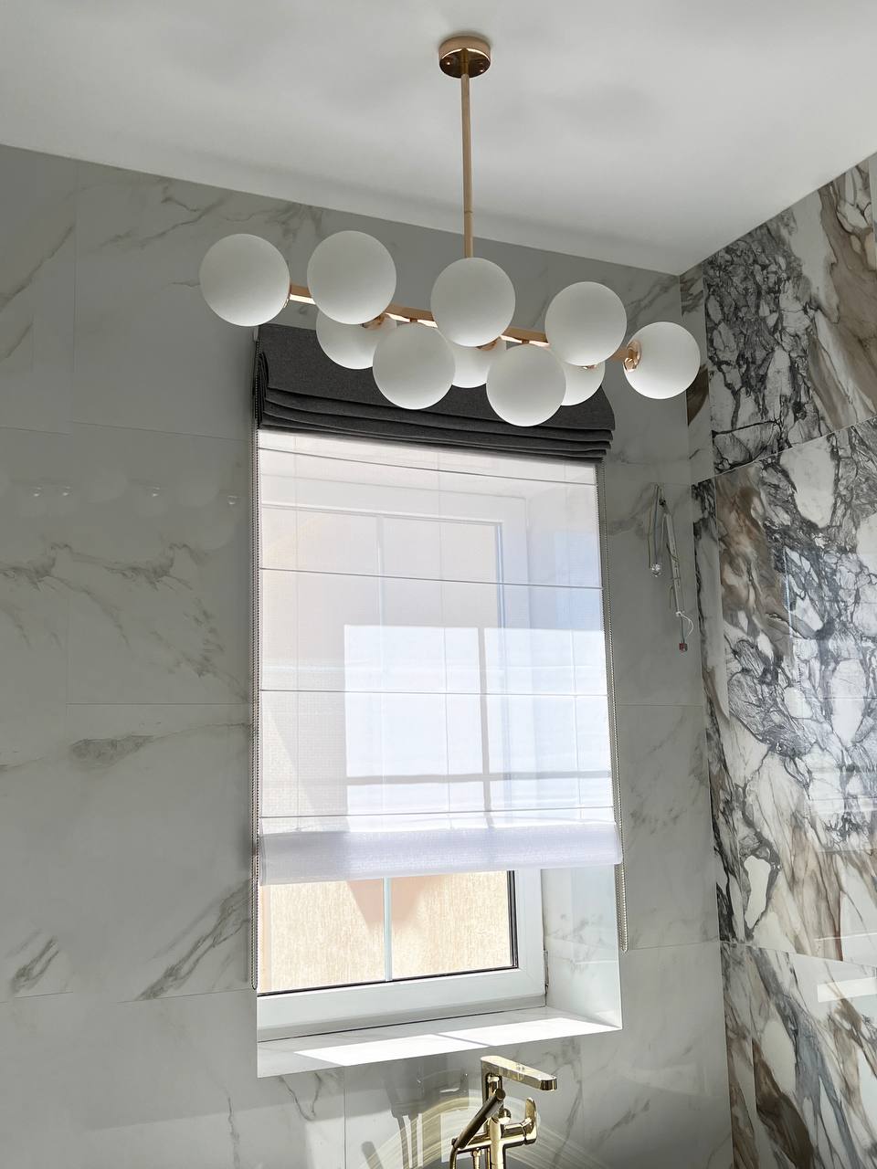 - Универсальность и эстетика. Двойные римские шторы в интерьере добавляют глубины и уюта, служат не только функциональным, но и декоративным элементом. Отлично подходят для жилых помещений, кухни и ванной. Разнообразие тканей, цветов и фактур позволяет подобрать вариант под любой стиль и дизайн.