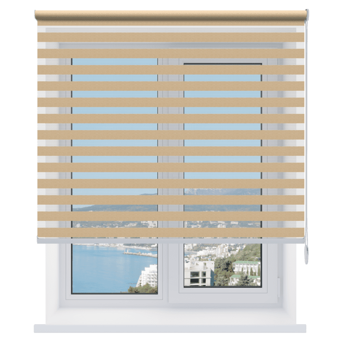Каждый слой ткани имеет чередующиеся непрозрачные и прозрачные полосы. При смещении полос друг относительно друга можно добиться полного затемнения («ночь», когда непрозрачные полосы совпадают), максимального светопропускания («день», когда совпадают прозрачные полосы) или промежуточных режимов, создавая эффект «зебра».