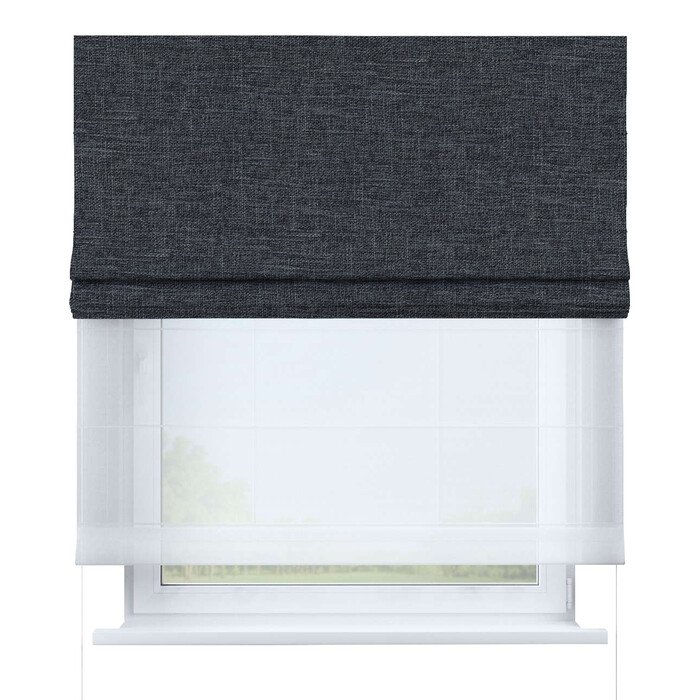 Римская штора день-ночь рогожка димаут графит, карниз верёвочный